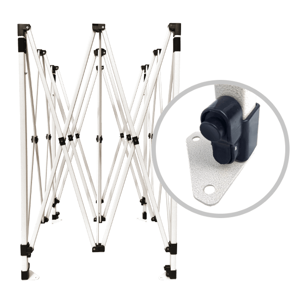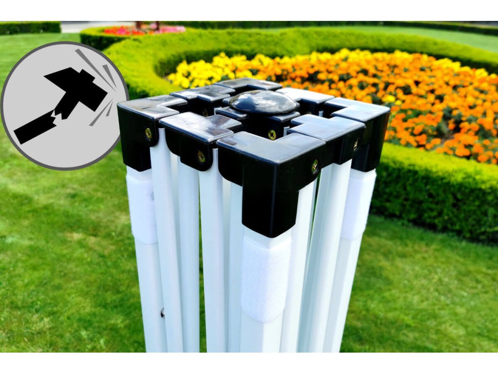 Négyzet profilból készült lábak talpakkal vannak ellátva, amelyeken lyuka vannak ez lehetővé teszi az sátor rögzítését füves területen.