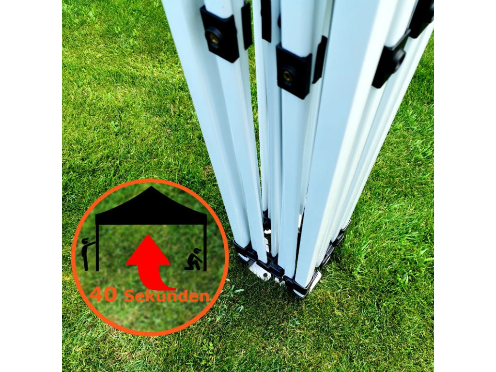 Pillanatokon belül felállítja a sátrat. Az oldalfalak rögzítése tépőzárral történik. A BRIMO sátrakkal létrehozhat takart teret akár egy percen belül.
