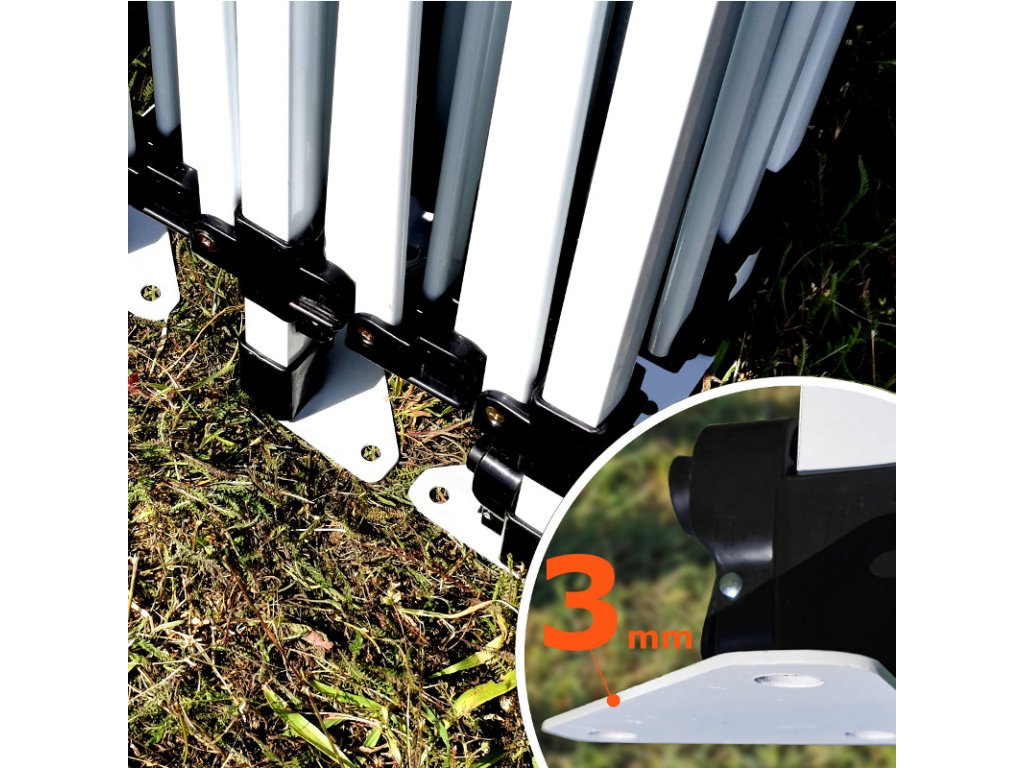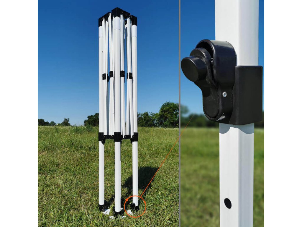 A modern dizájn lenyűgöző. Az acélszerkezetet kedvező súlyának köszönhetően a szállítás kényelmes. Ugyanolyan könnyű lebontani a parti sátrat mint felállítani. Nincs szükség szerszámokra. A lábak négyzet alakúak. A mennyezet magassága 5 magassági fokra állítható be.